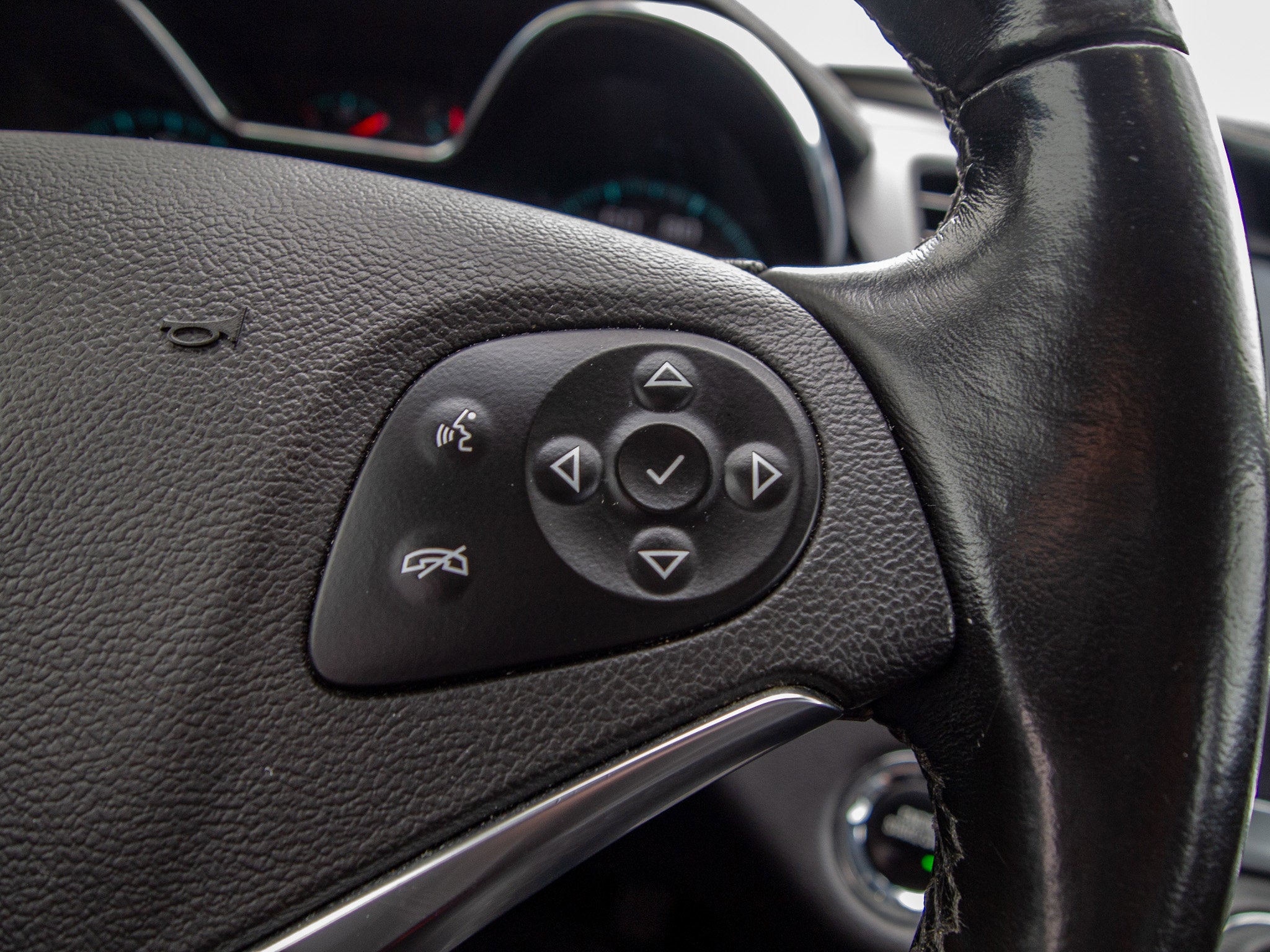 - Leather-wrapped steering wheel